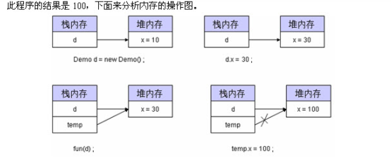 此程序的运行结果是100,下面分析内存的操作图: