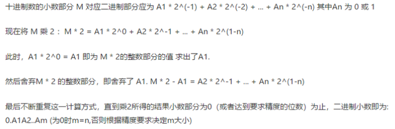 对于一个十进小数,例如0.7D,它是0.7个整苹果,而1个整苹果在二进制中有2等份(也就是有2个0.1B),那么0.7D个苹果在二进制中有0.7×2=1.4个0.1B;