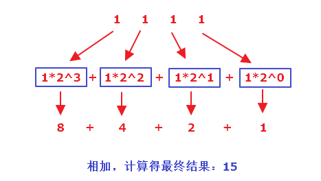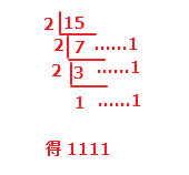 整数部分 1111 计算得 15,详细计算过程见下图: