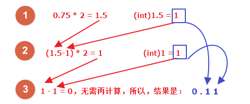 小数部分 0.11 计算得 0.75,详细计算过程见下图: