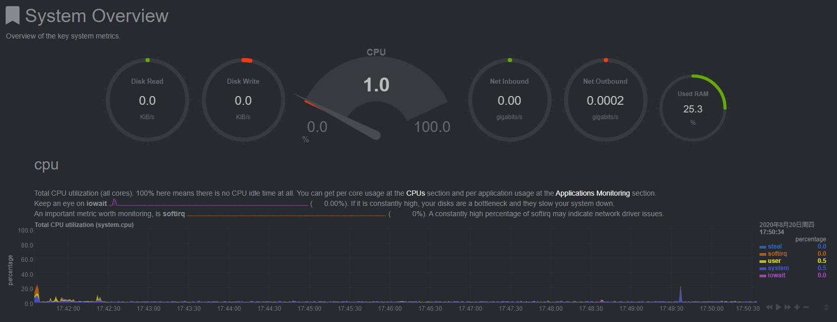 [注]: NetData有汉化版,但是是第三方的包,出于安全考虑还是用官方的。