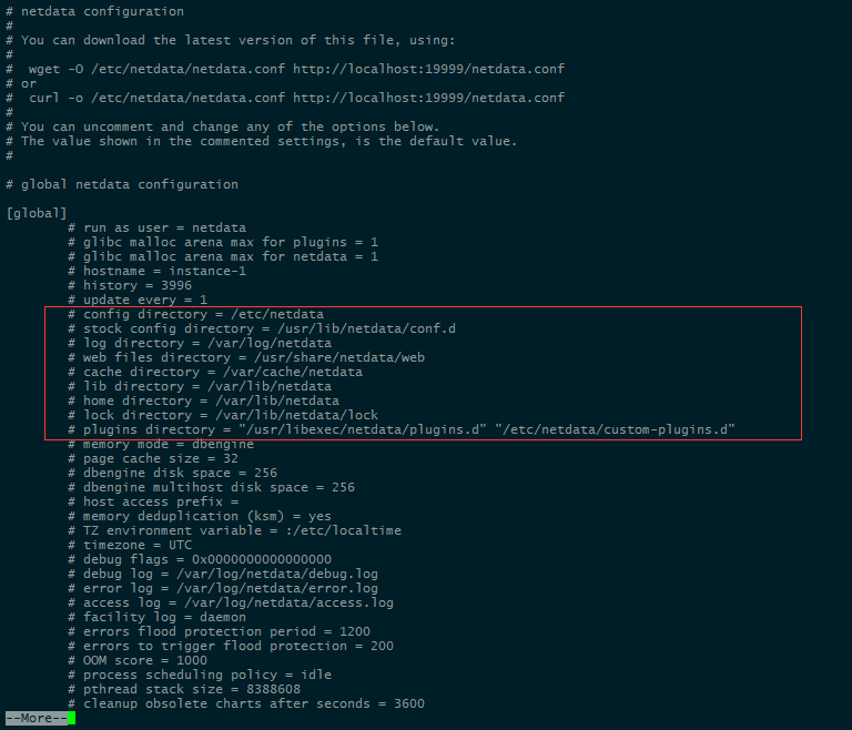 NetData的核心配置可以通过cat /etc/netdata/netdata.conf或者http://127.0.0.1:19999/netdata.conf查看。