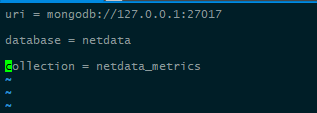接着Netdata配置目录中,运行sudo ./edit-config mongodb.conf并设置MongoDB URI,数据库名称和集合名称