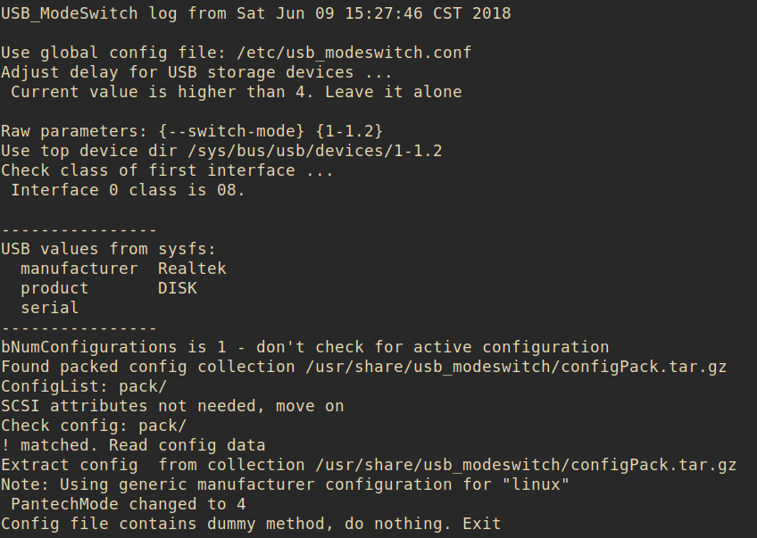 这会输出日志到/var/log/usb_modeswitch_xxx,xxx为设备名。