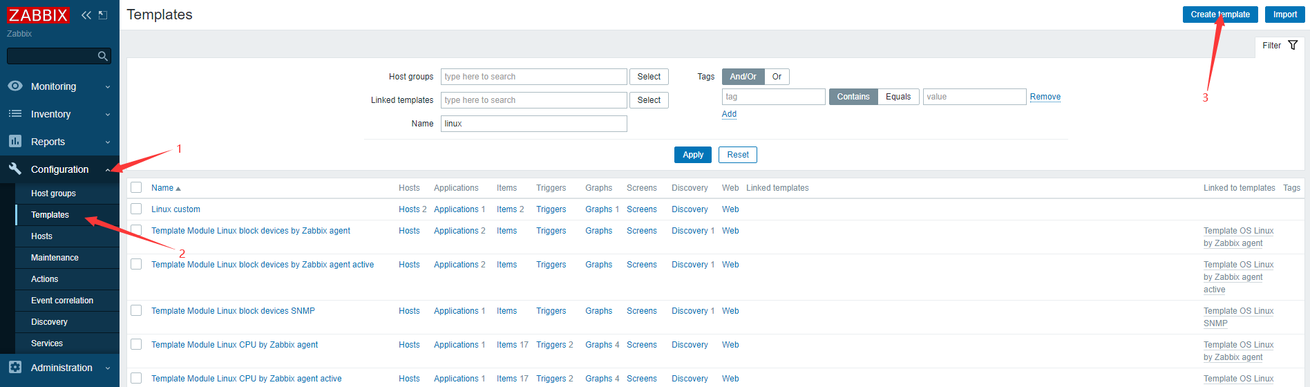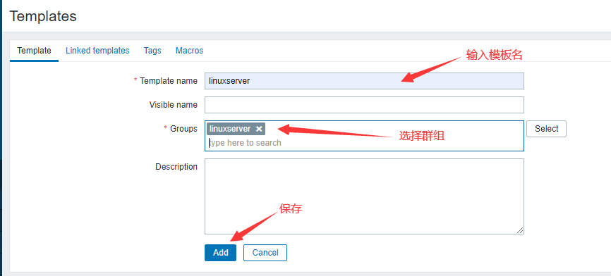 模板的作用就是以后添加好新的主机之后套上模板就可以应用各种监控项,这里简单创建一个模板使用