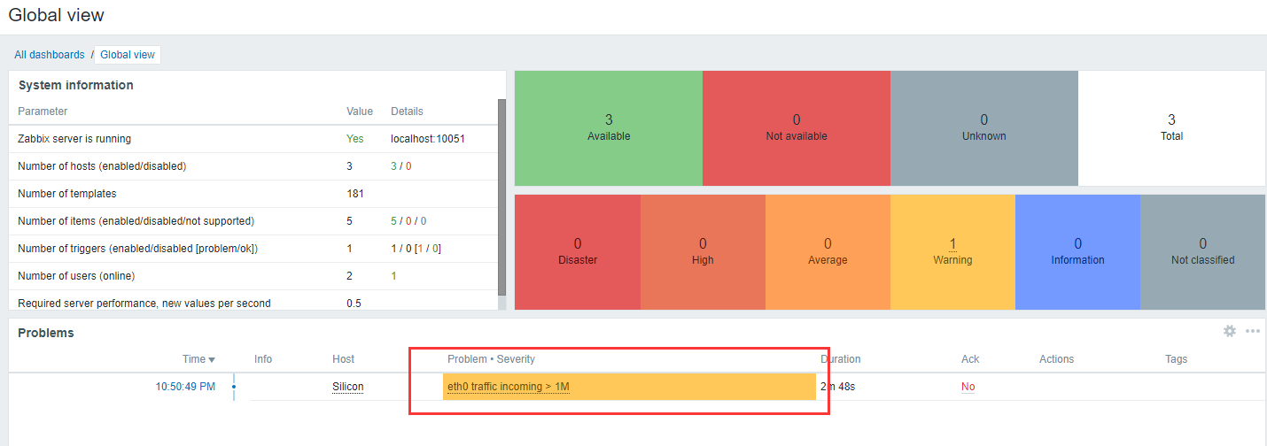 至此,可以从Monitoring中看见有warning告警以及从HOST中可以查看Graphs流量图