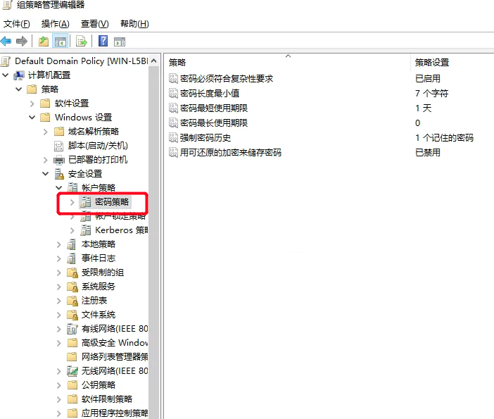 2. 计算机配置-策略-Windows 设置-安全设置-账户策略中找到密码策略