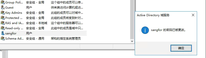 5. 再去域控管理中修改密码,显示修改成功,大功告成。