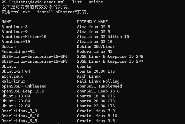 wsl --list --online